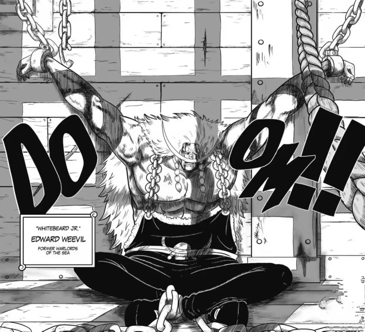 白胡子二世来到白胡子的故乡,他对付入侵的海军,这些海军马上请求支援,绿牛正好离开了和之国,他得知白胡子二世就在附近,于是直接去村庄里抓人。白胡子二世和绿牛大战一场,他完全不是绿牛的对手,最后被绿牛活捉了。
